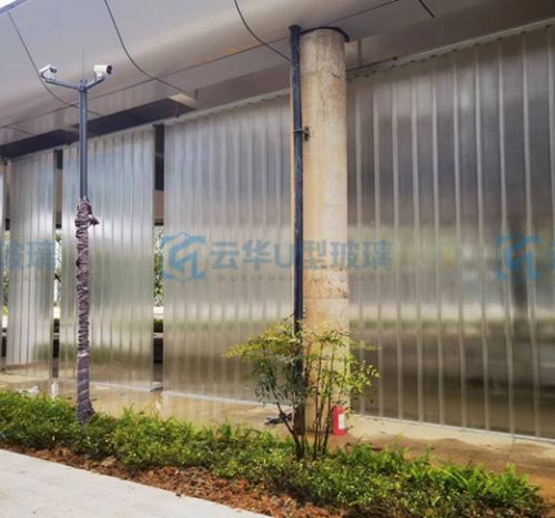 U玻幕墻為無(wú)鋼架龍骨結(jié)構(gòu),兩翼起到加強(qiáng)作用,強(qiáng)度超過(guò)同厚度普通平板玻璃的10倍以上,能夠自成墻體。